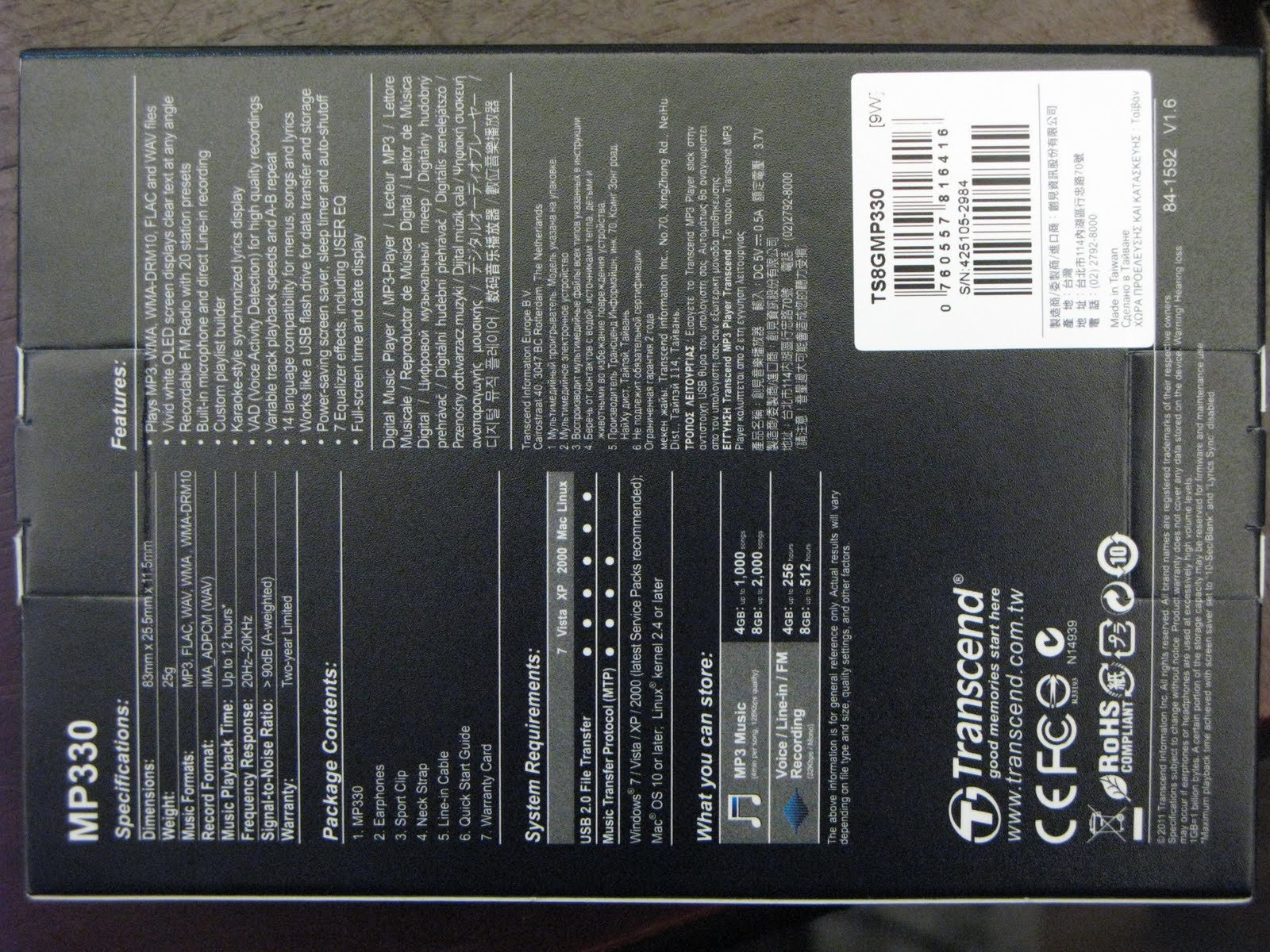 值得一提的是,這是一個「Made in Taiwan」。它的包裝、印刷跟設計精美嚴謹(Printed in Taiwan),總體而言,是我向來心目中 Made in Japan 的品質。以它的價位,值得推薦。如果想要買一個 8G 隨身碟的話,何妨就多加一點錢順便買個附帶的 MP3 Player、FM Radio、Voice Recorder,雖然這個產品名為「Digital Music Player」。我們對一個真正專業的 Music Player 或是錄音設備的要求當然不是這個價位的產品所可以滿足的,對我來說,這個產品已經物超所值,也打破了什麼都必須在中國製造的神話。
