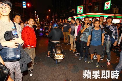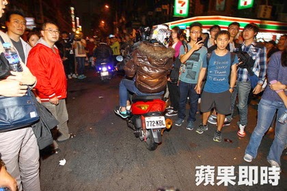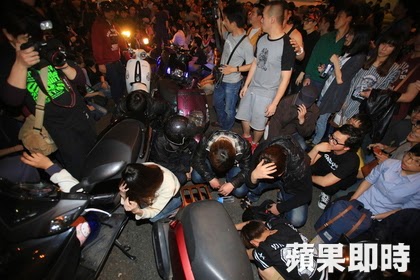 事情是這樣發生的,最初這幫人騎機車硬闖反服貿群眾現場,被民眾抗議。施昂強攝