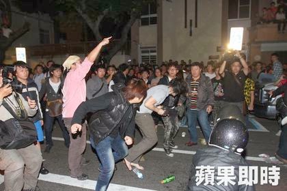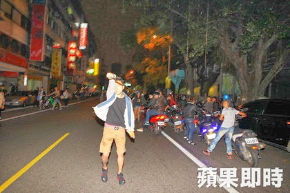 飆車族不爽,竟下車追打抗議學生。楊忠翰攝